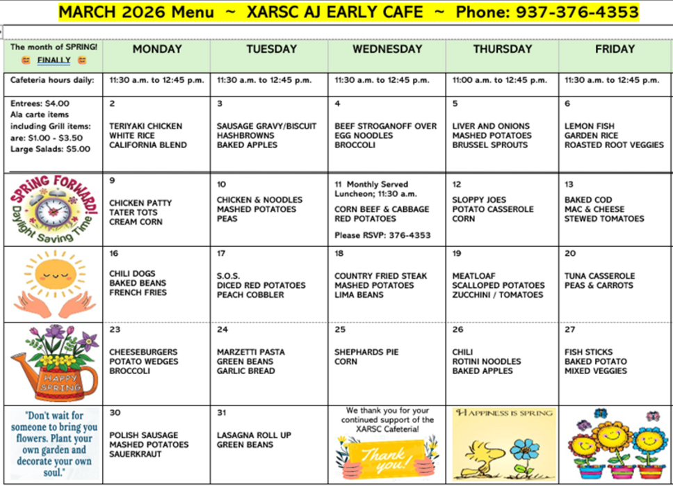 If you want to attend the XARSC Monthly Luncheon on the 2nd Wednesday of each month, WE'D SINCERELY APPRECIATE IF YOU CAN RSVP ahead of time to 937-376-4353