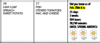 THE REMAINDER OF FEBRUARYS MENU 2026: